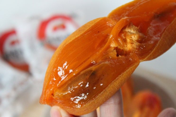 약간 건조하고 겉은 쫄깃하고 속은 완전 촉촉하고 부드러운 홍시 맛이 느껴지는 초특곶감이네요.